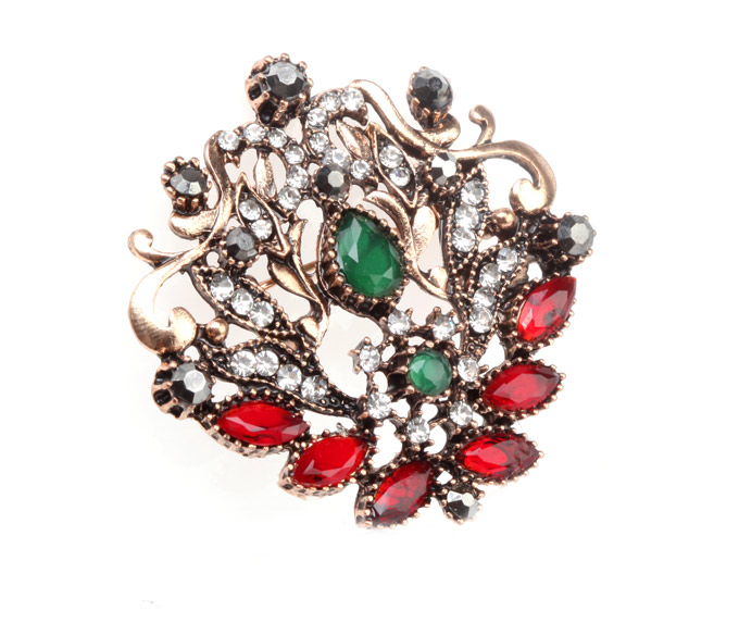 - Opis: Piękna, klasyczna broszka wykonana z brązu,wypełniona drobnymi cyrkoniami oraz naturalnymi kamieniami. Ozdoba zakończona solidnym zapięciem agrafka. Idealny pomysł na prezent, biżuteria gotowa.