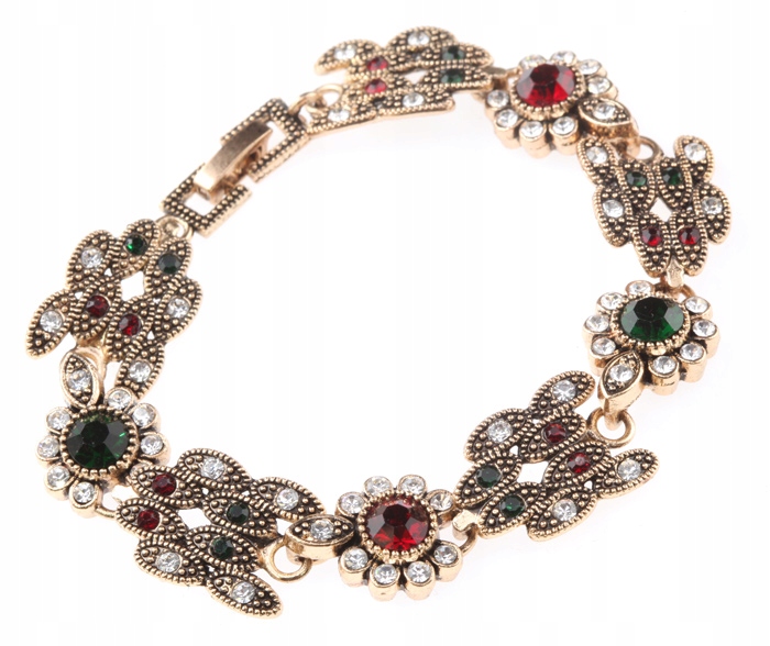 Opis:Piękna bransoletka orientalna w stylu retro zdobiona kryształkami.