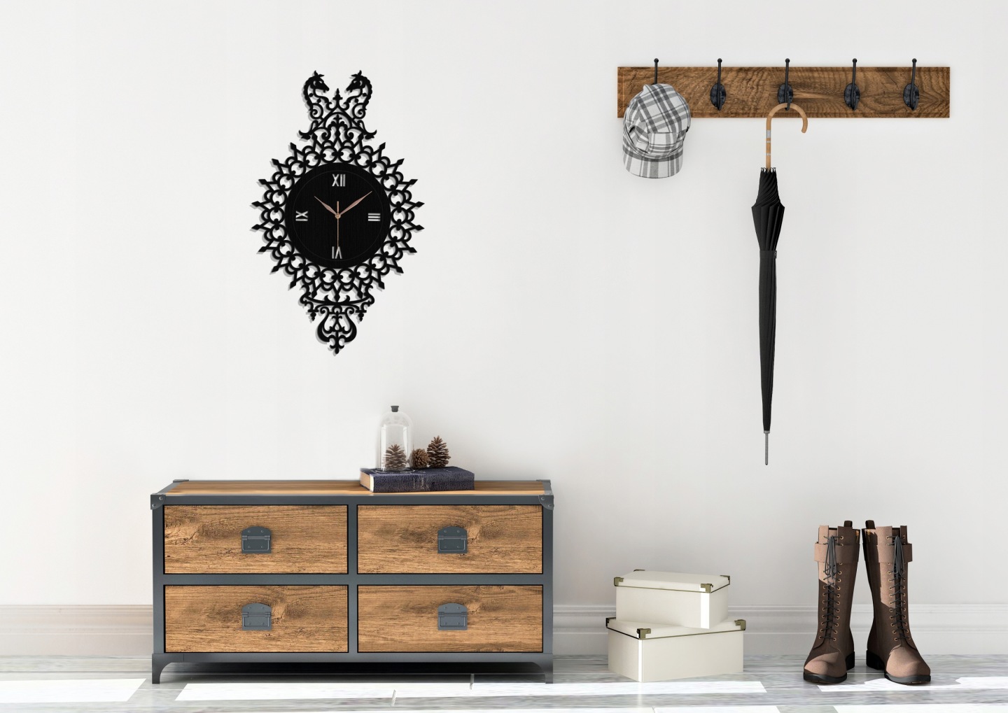Dekoracyjny, ażurowy zegar w klimacie vintage z motywem koni. Zegar a jednocześnie delikatna i filigranowa dekoracja ścienna.