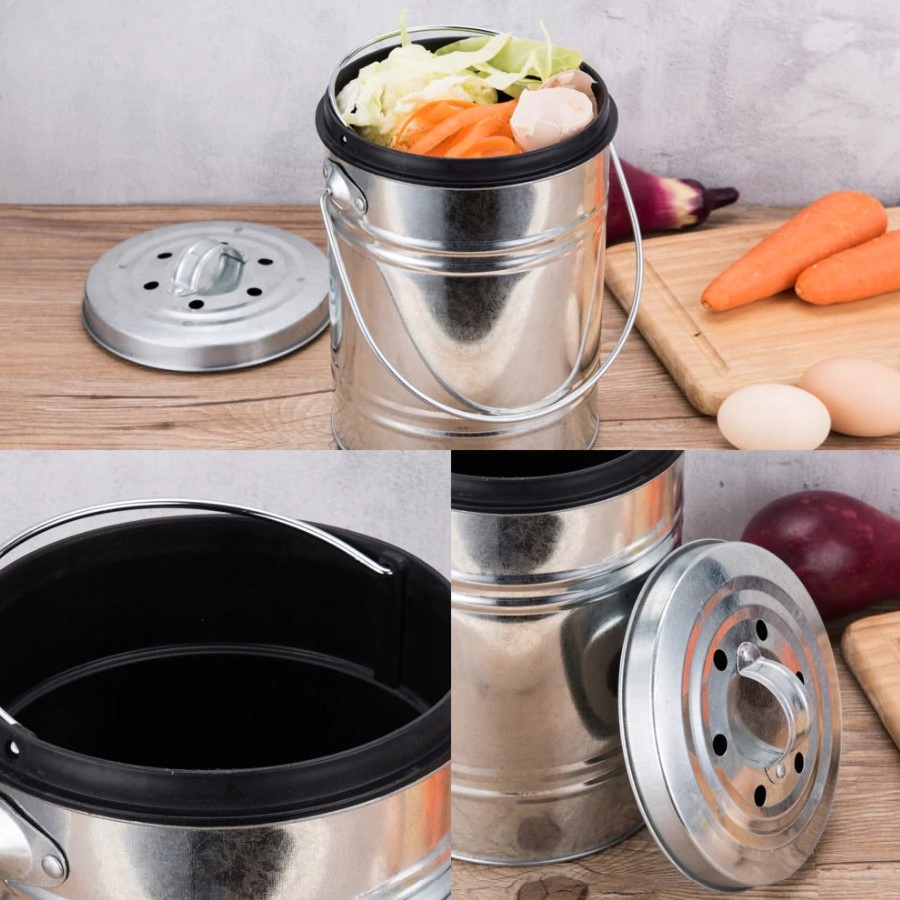Kompostownik jest idealny do przechowywania resztek jedzenia i roślinnych odpadków, zanim zostaną przeniesione do zewnętrznego kompostownika.