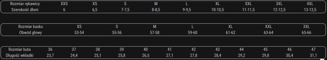 Rozmiar rękawic dopasowujemy według zamieszczonego obok obrazka