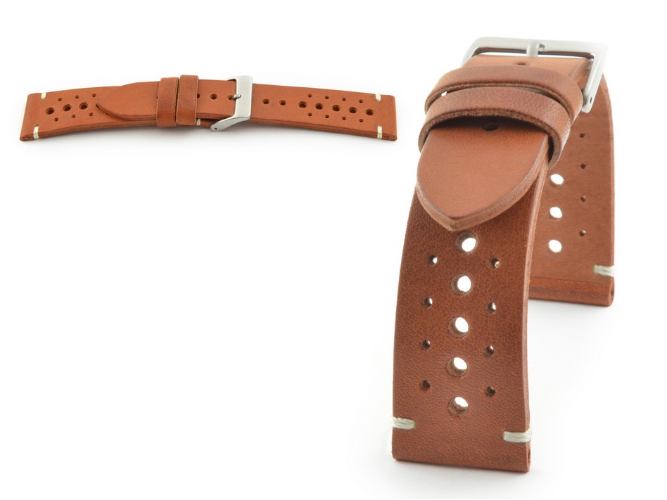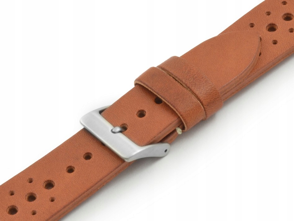 Wytrzymały pasek z jednego kawałka włoskiej skóry. Wyjątkowo miękki i idealnie układający się na nadgarstku. Przy klamerce oraz w miejscu mocowania pasek przeszywany jest kontrastową nicią. Dodatkowe otwory w pasku wpływają na komfort noszenia. Wysokiej jakości stalowa szlifowana klamerka. Pasek ze względu na swoje cechy zadowoli najbardziej wymagających klientów.
