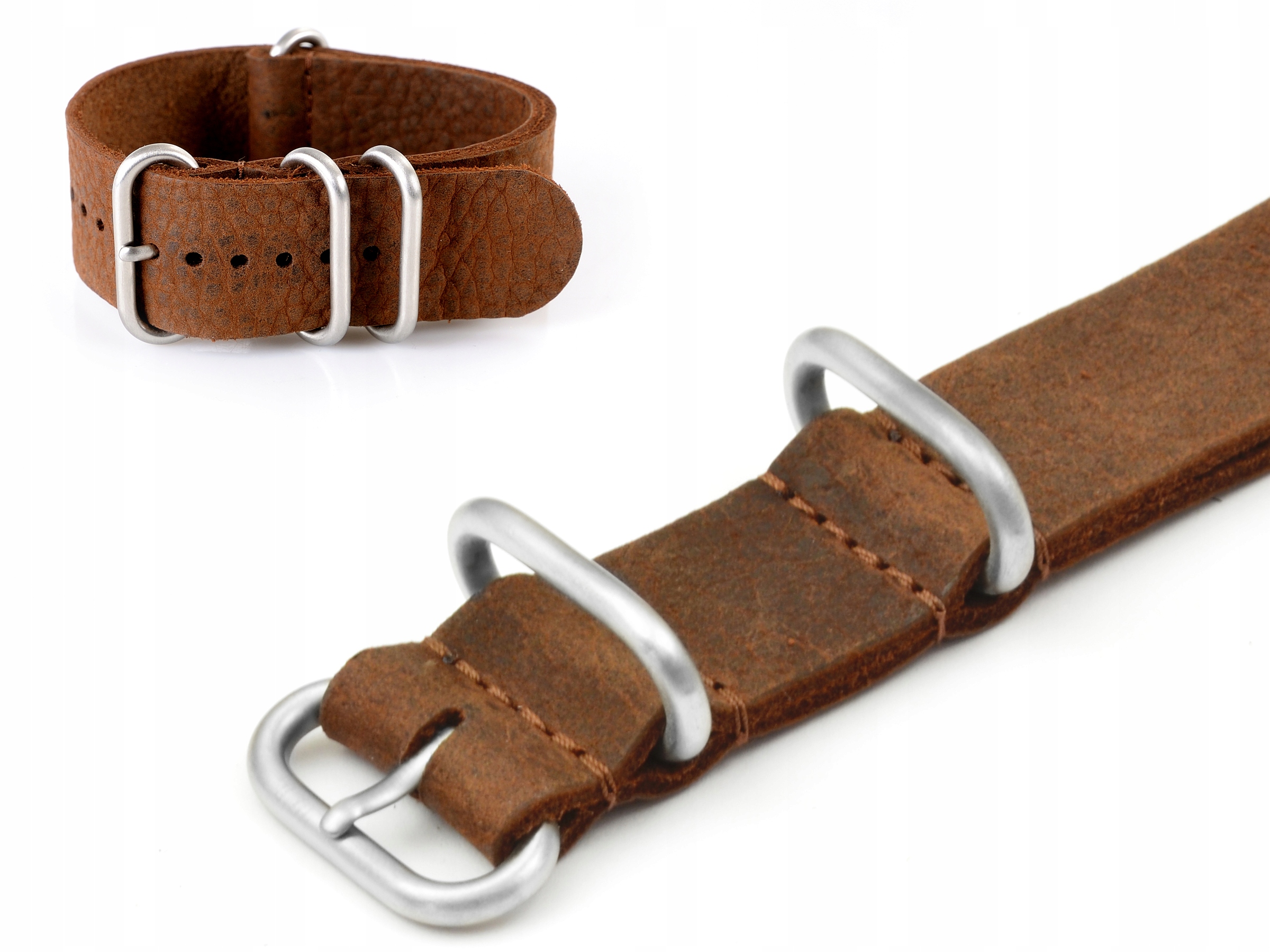 Pasek Nato Leather Vintage występuje na naszych aukcjach w rozmiarze 18,20,22,24 mm.