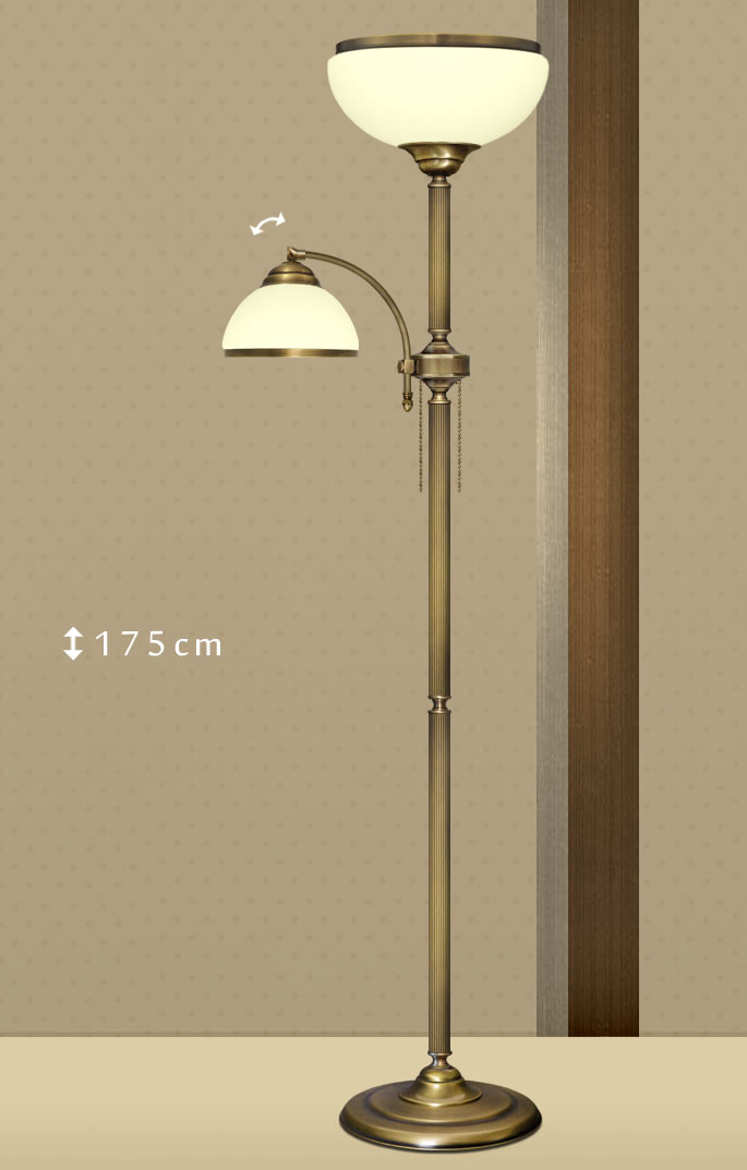 - wymiary: wysokość lampy 175cm (lub na zamówienie), średnica klosza górnego 30cm, dolnego 19cm