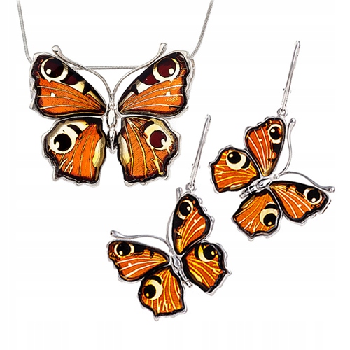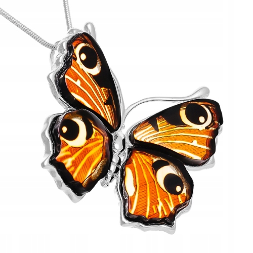 Motylek z "malowanymi" bursztynowymi skrzydełkami - prześliczna zawieszka dla wyjątkowej Pani