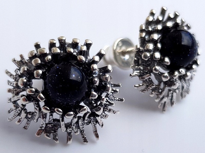 Przepiękne i wyjątkowe kolczyki,wykonane z oksydowanego srebra próby 925, z kamieniem w którym migoczą gwiazdy...