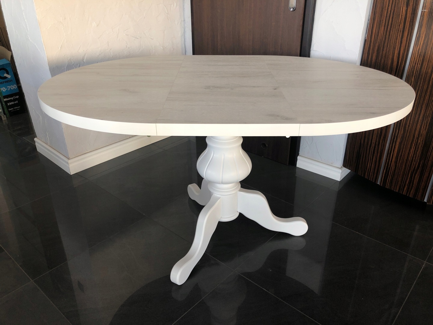 - Stół o średnicy 90cm rozkładany na 130