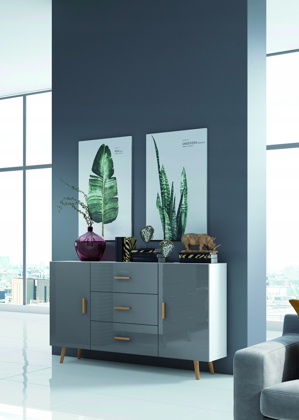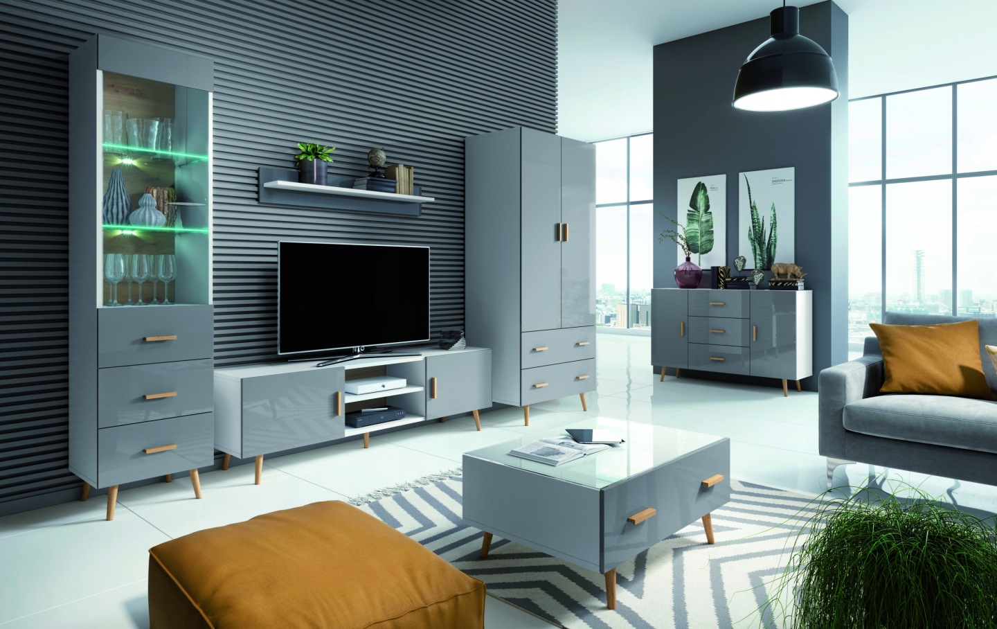 - kolor frontów: szary połysk