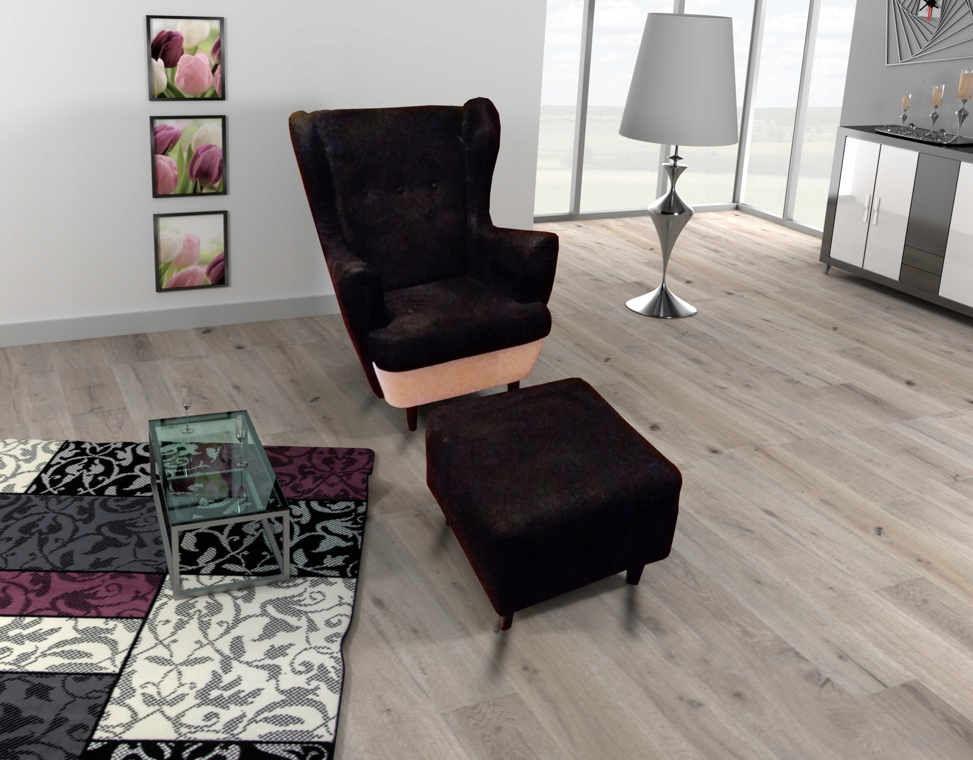 Fotel Retro Uszak Fryderyk + Podnóżek
