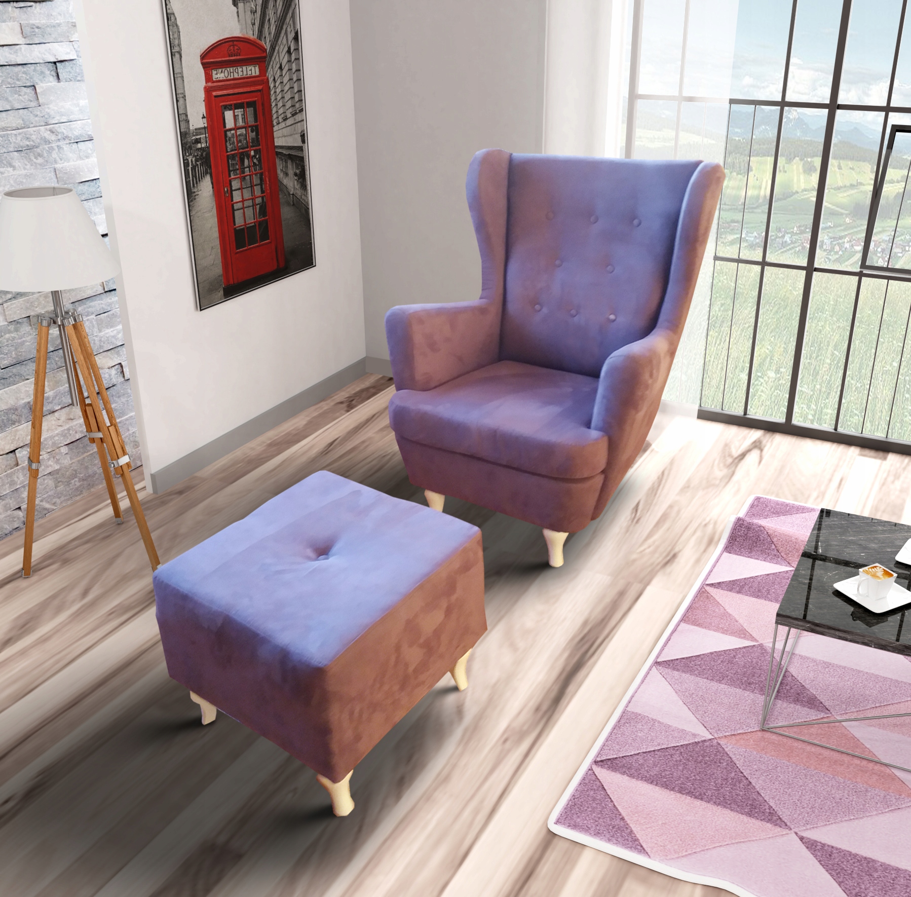 Retro kreslo uszak Fryderyk + Footrest !!!