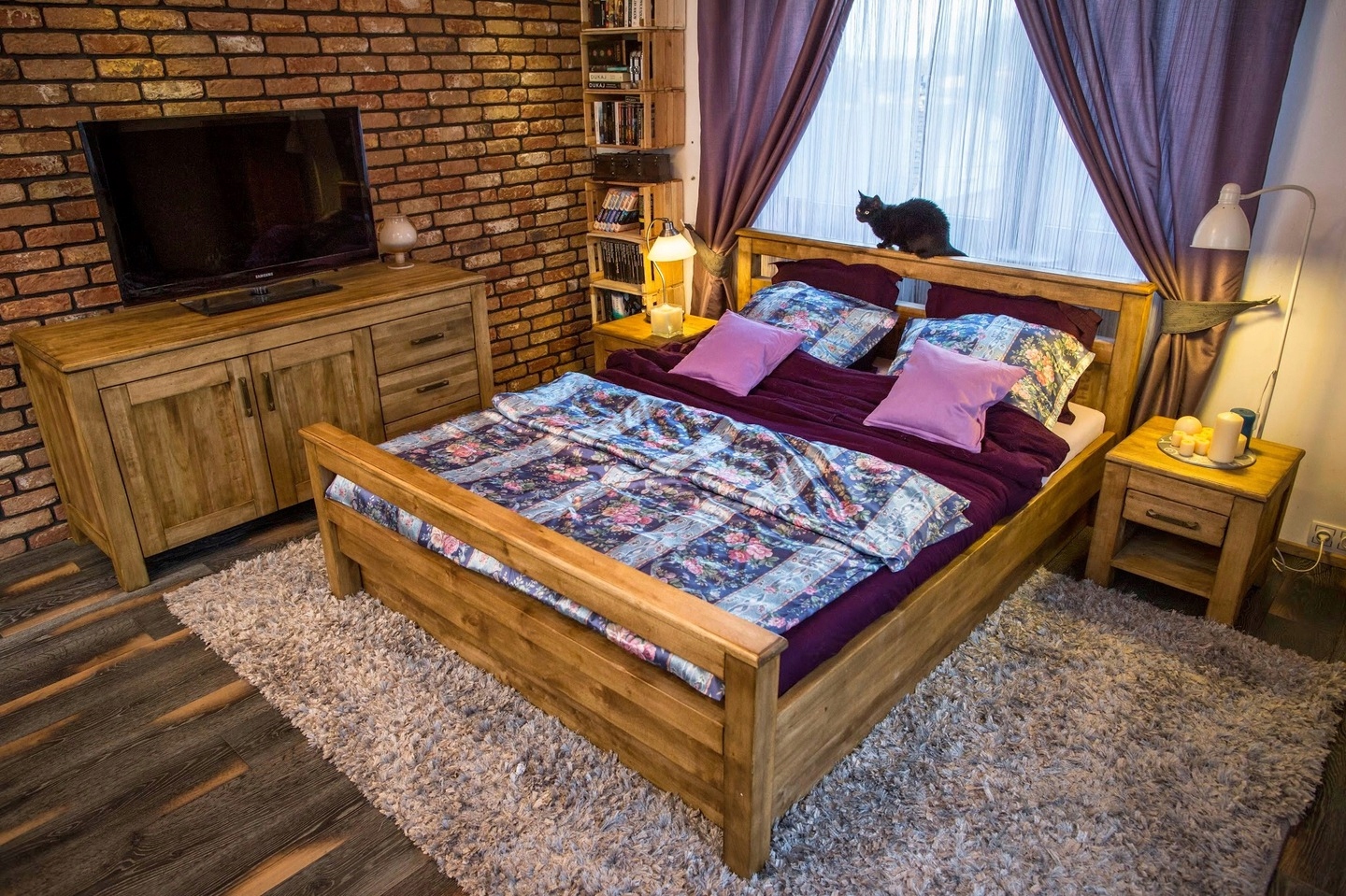 W STANDARDZIE ŁÓŻKO WYKONUJEMY W KOLORZE OLEJ RUSTYKALNY. MOŻEMY WYKONAĆ ŁÓŻKO W INNEJ KOLORYSTYCE, BEZ EFEKTU POSTARZANIA.