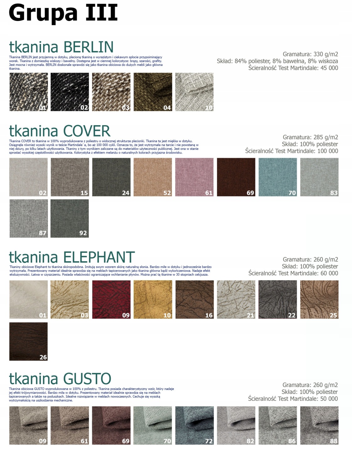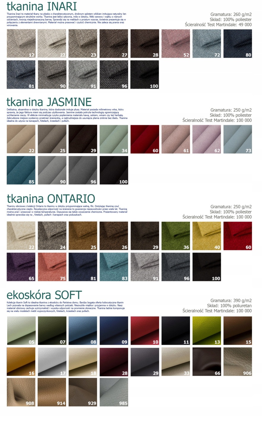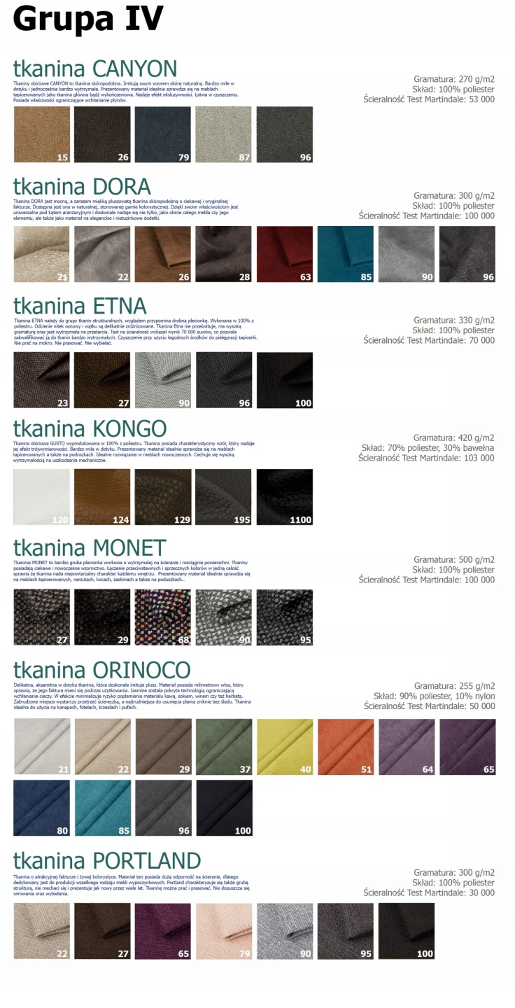 Inne tkaniny lub ekoskóra do wyceny poprzez mail lub telefon.