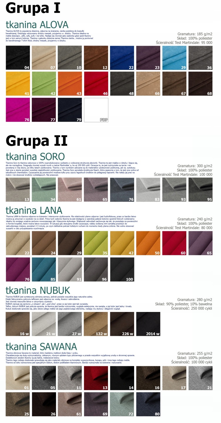 Podstawowa kolorystyka kanapy FINKA 2 PIK: