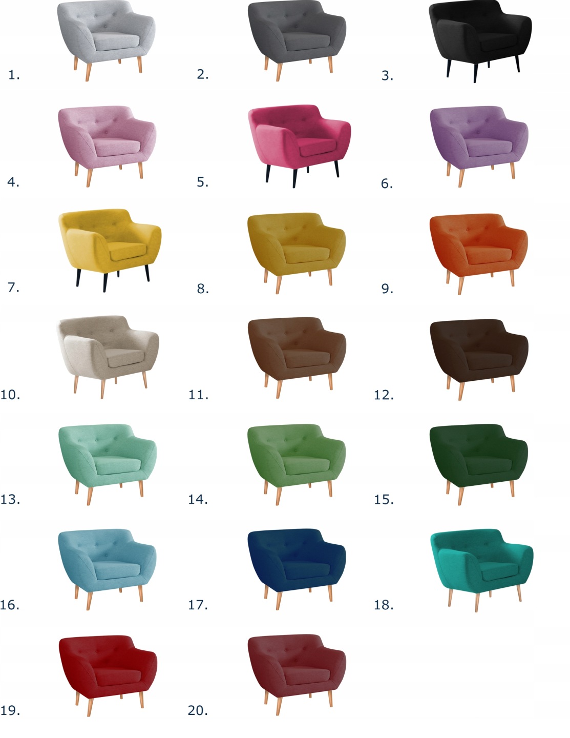 Podstawowa kolorystyka fotela FINKA PIK: