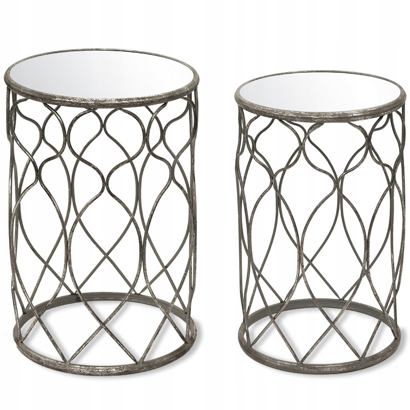 Stoliki wykonano z utwardzonego metalu. Solidne metalowe obramowanie przytrzymuje lustro w postaci wstawki.