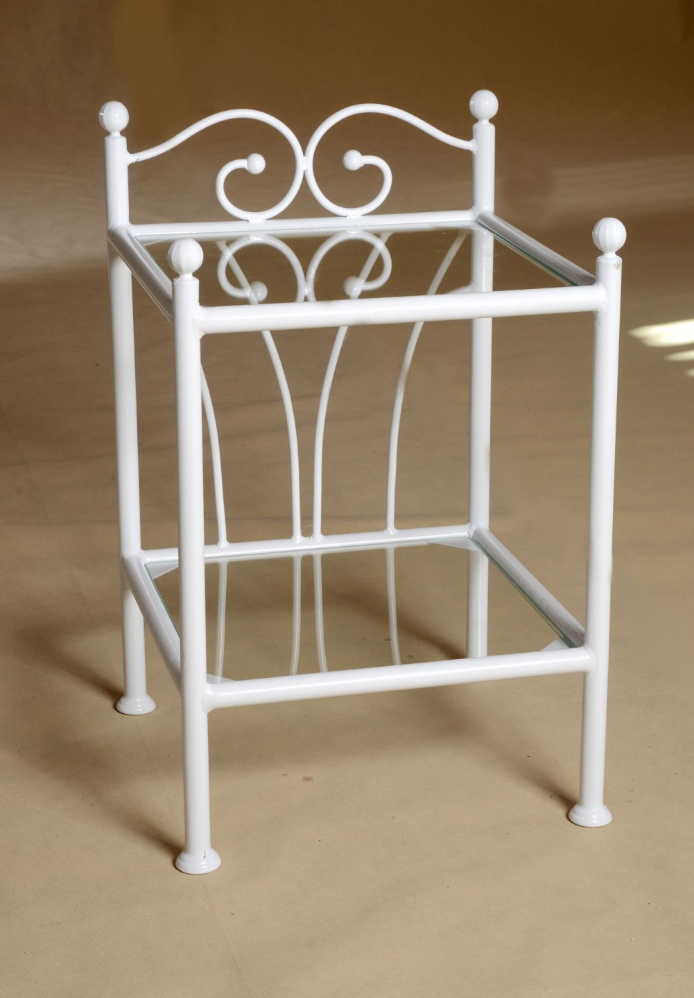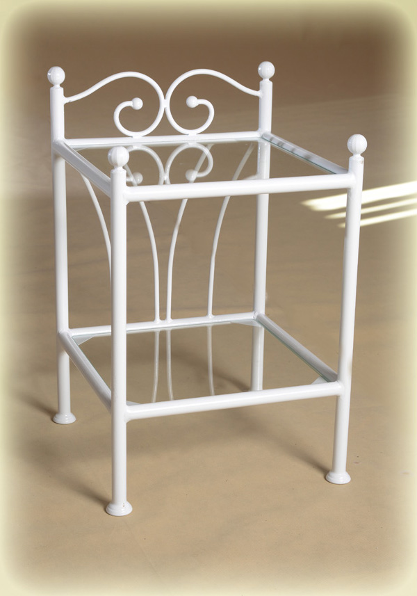 Każda szafka to ręczna misterna robota. Szafka doskonale komponuje się z łóżkami kutymi z naszej Oferty. Szafka wykonana jest z profila okrągłego o średnicy 22 mm i prętów o średnicy 10 cm. Szafka posiada 2 półki szklane o wymiarach 34,5 cm x 34,5 cm, grubość szkła - 4 mm.