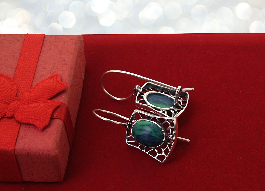 - SIEŤOVINA RETRO NÁUŠNICE ZELENÝ KAMEŇ, STRIEBRO 925