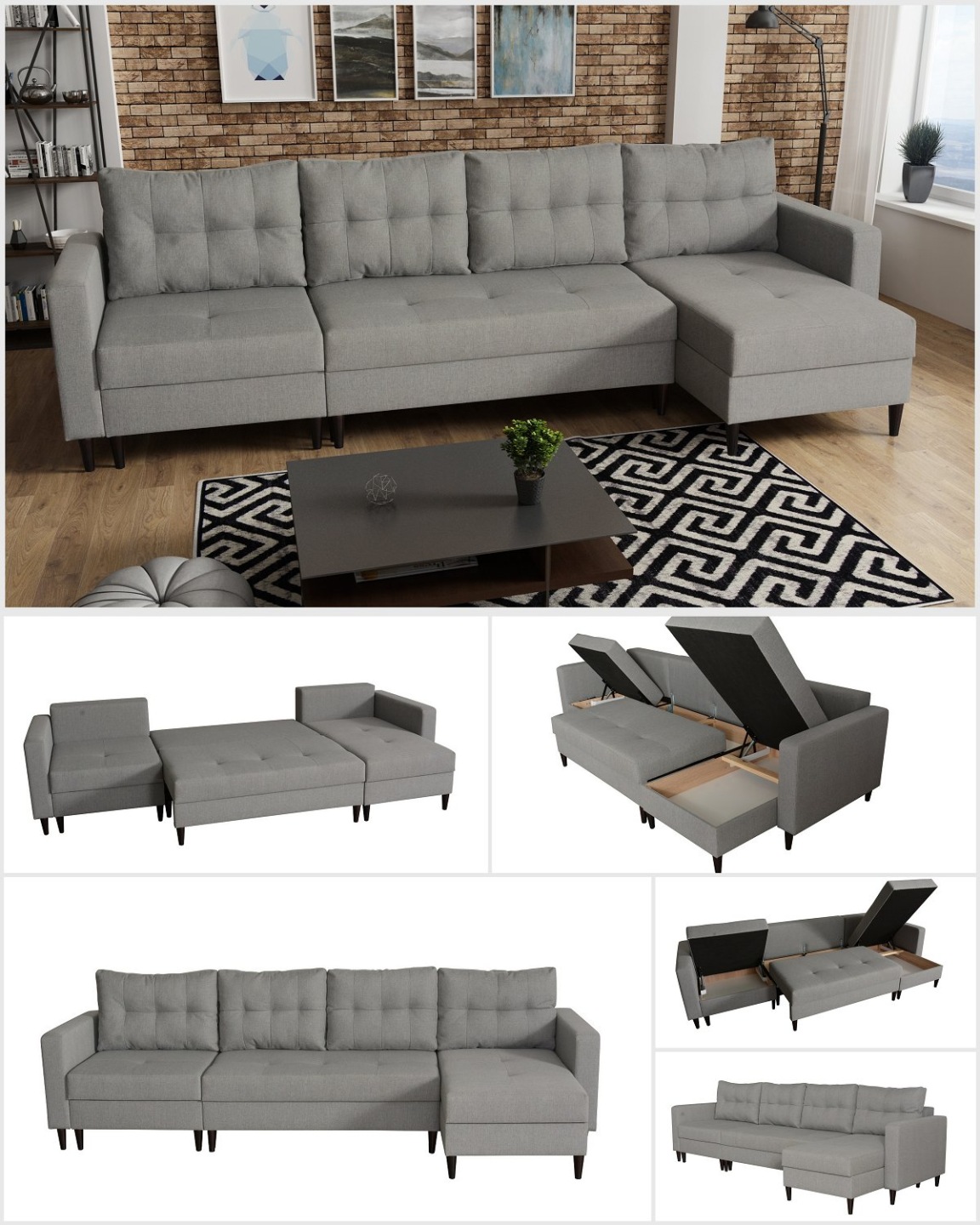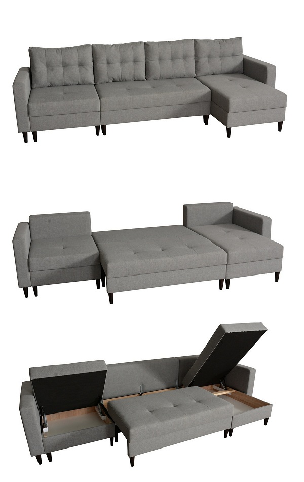 - opcje dodatkowe: szeroki wybór modułów (boki, bary, ottomany, sekcje rogowe, różne szerokości funkcji spania)