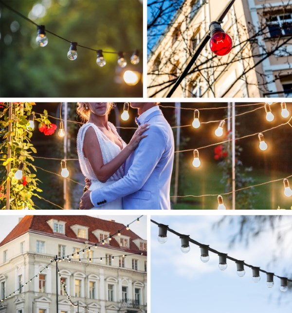 Oferujemy girlandy z oprawkami o stopniu ochrony IP44 , dzięki czemu mogą być one stosowane na zewnątrz w każdych warunkach atmosferycznych.