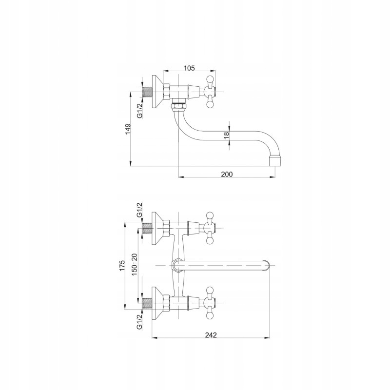Bateria zlewozmywakowa ścienna RETRO (B204)