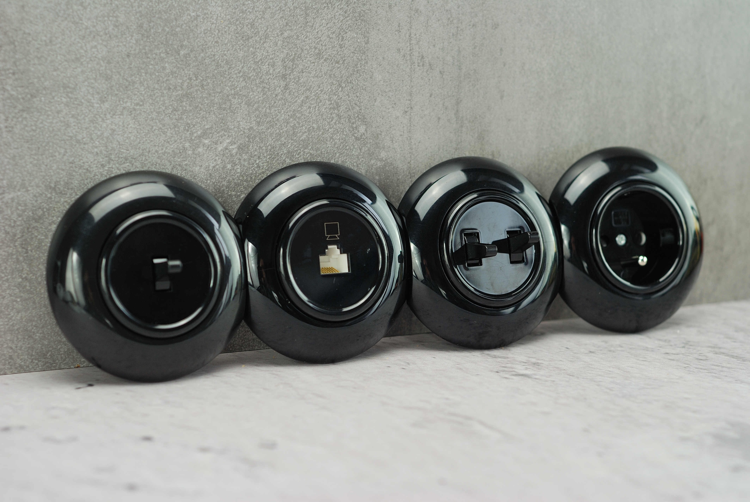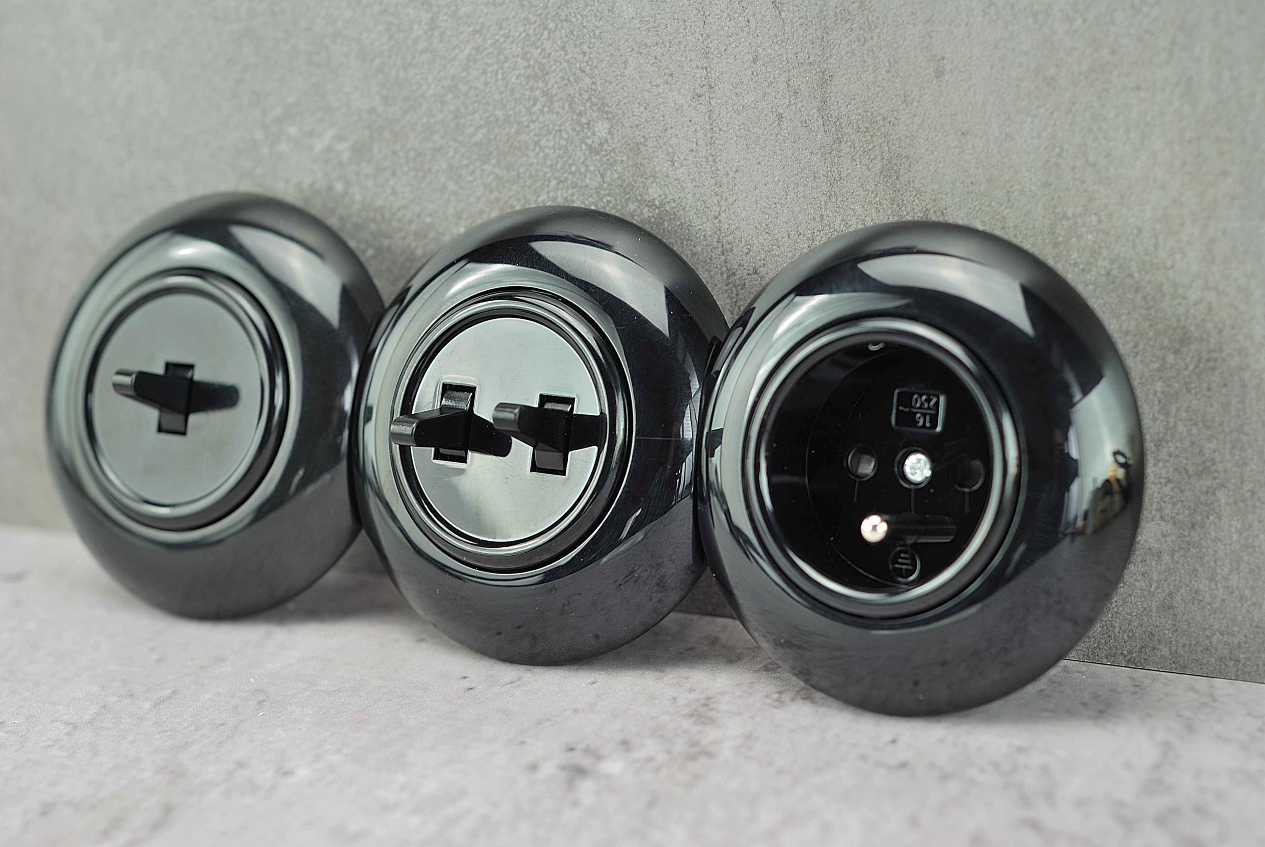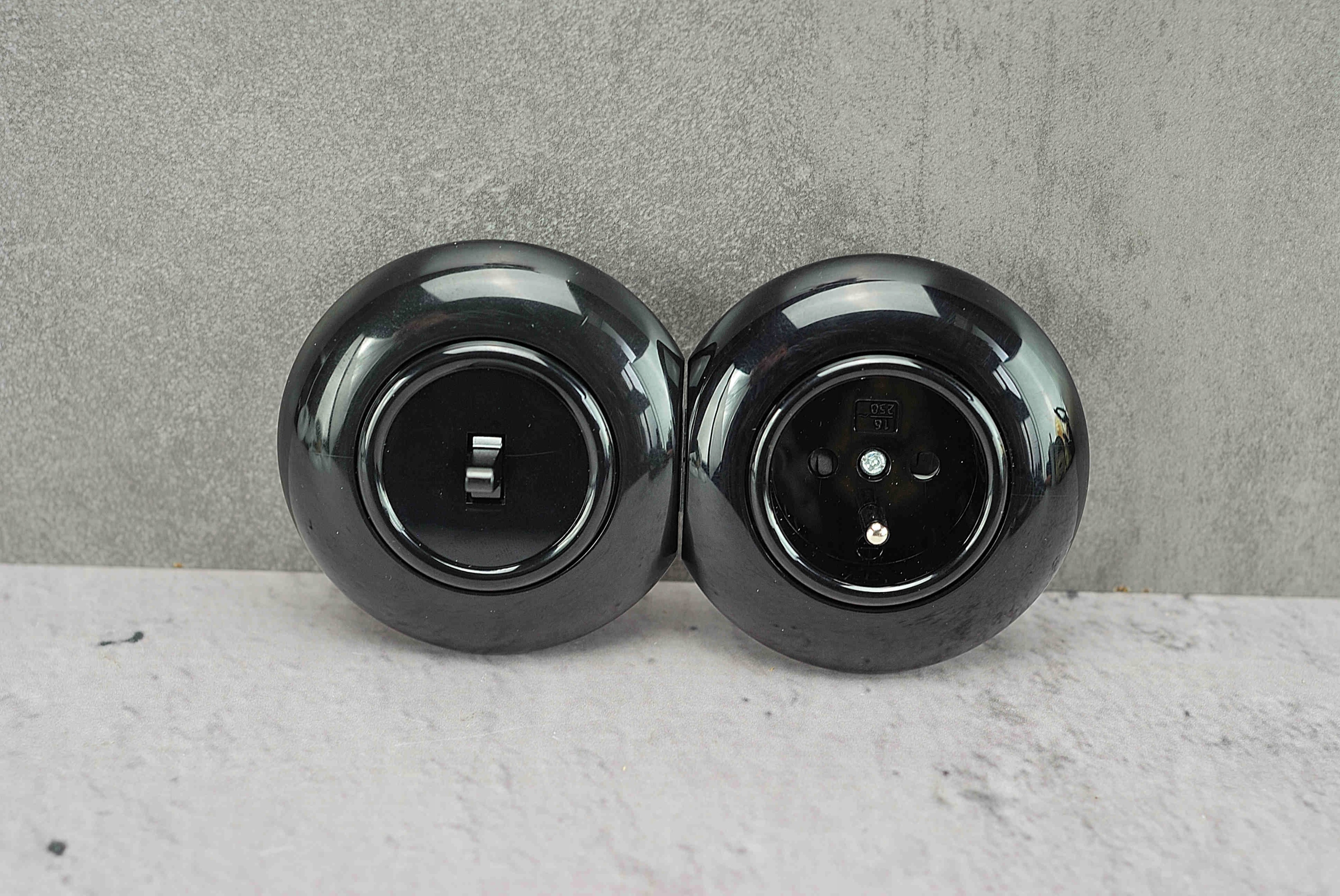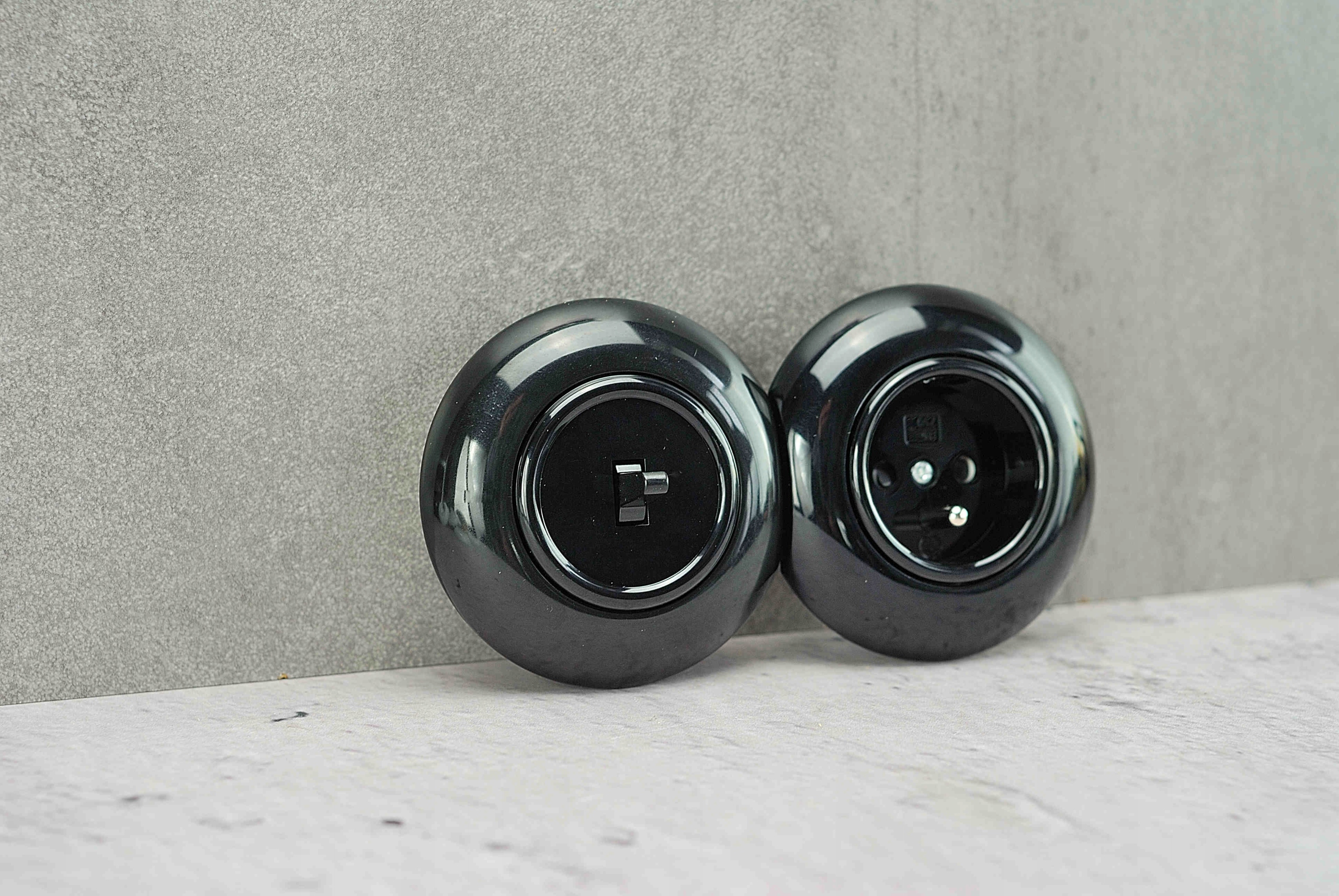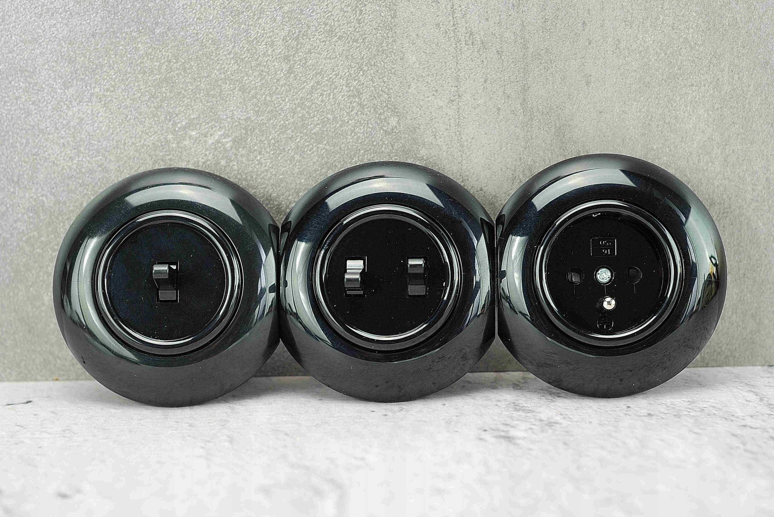 Te gniazdka nie są lakierowane, jest to materiał barwiony w masie, co oznacza że kolor nie będzie się wycierał ani odbarwiał. Te przełączniki i gniazdka zawsze będą już czarne.