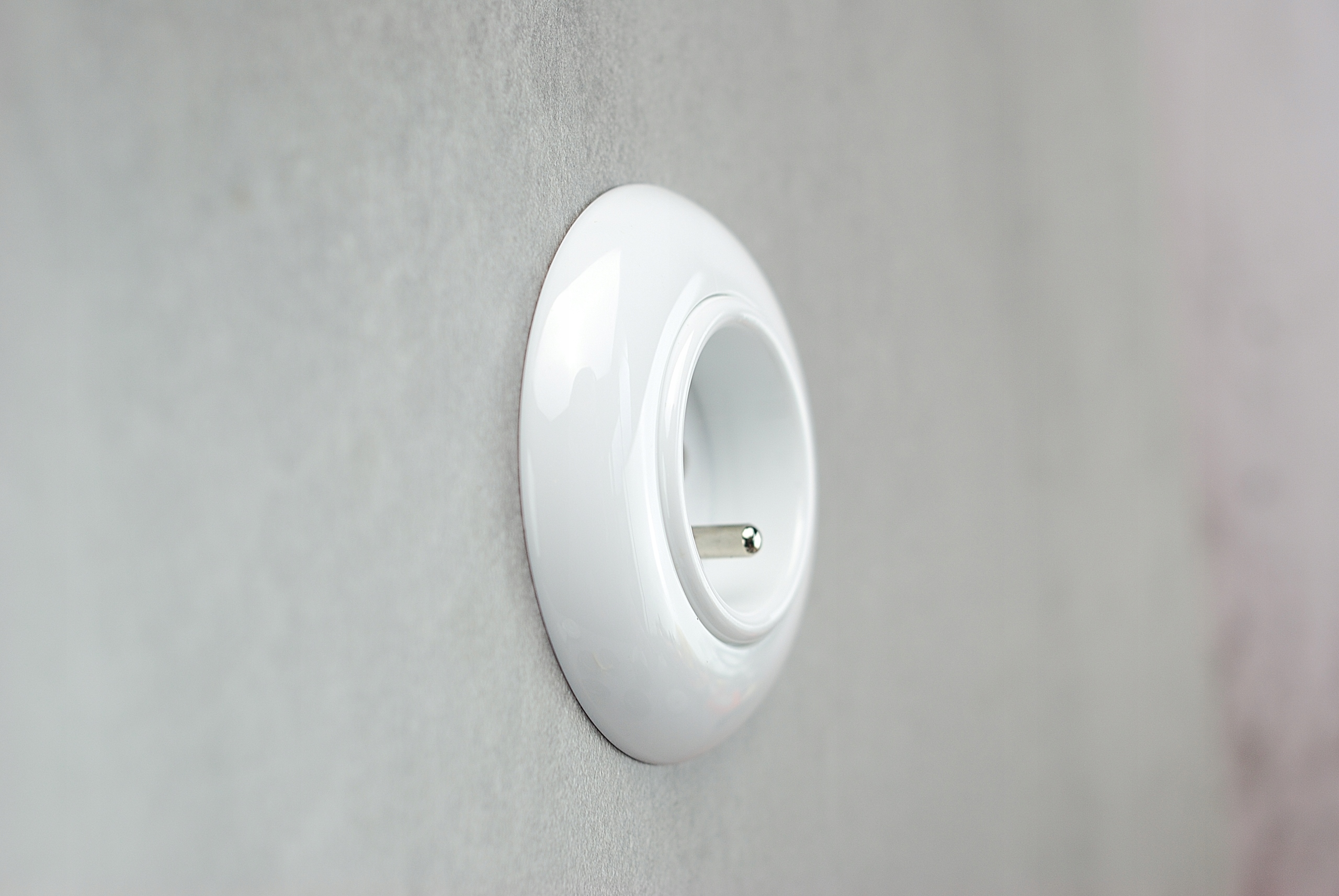 podkrovná biela zásuvka kontakt 230V Loft Retro