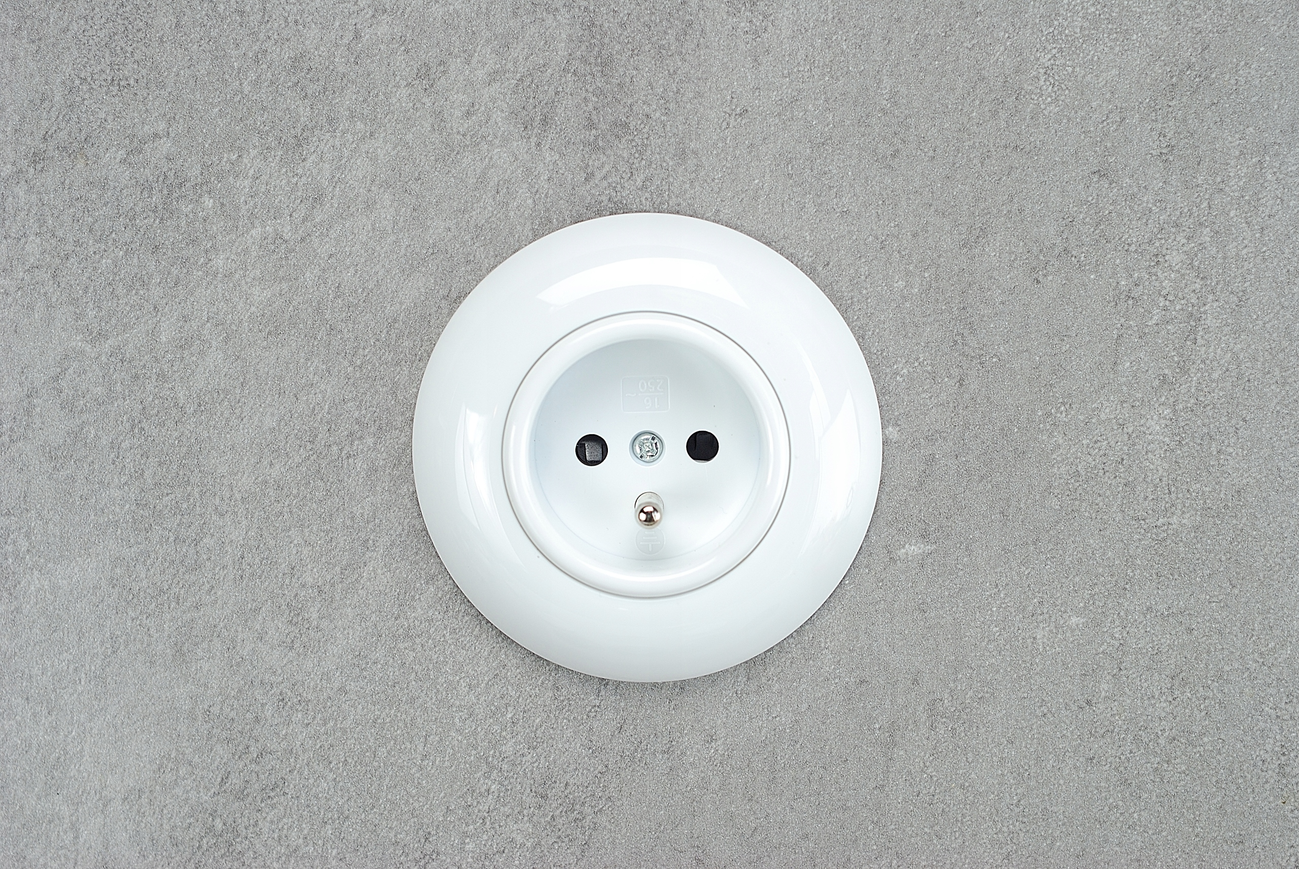 - podkrovná biela zásuvka kontakt 230V Loft Retro