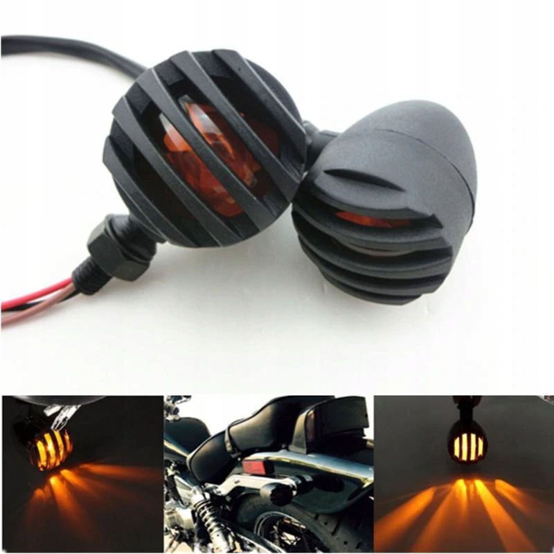 Oldschoolowy wzór kierunkowskazów w kształcie grila zapewni każdemu pojazdowi klasyczny i nietuzinkowy wygląd. Bardzo mocna i masywna konstrukcja. Kienkowskazy wyposażone w tradycyjną żarówkę dlatego montaż nie wymaga zmiany przerywacza.
