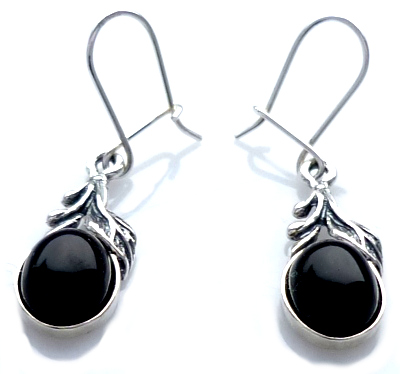 Kolczyki srebrne "LISTKI", wykonane z oksydowanego srebra próby 925, wysadzane onyksem.